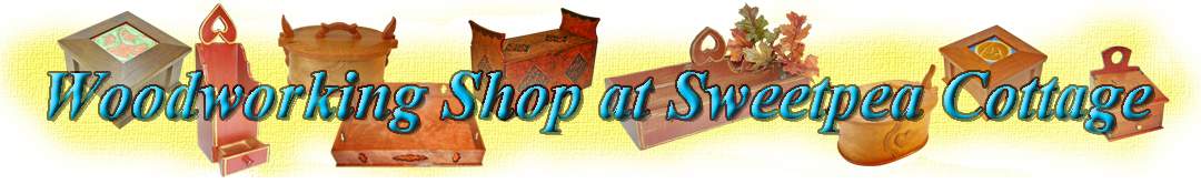 For over twenty years the Woodworking Shop at Sweetpea Cottage, operated by Ken Drews, has been producing interesting and unusual objects made out of wood. The shop has been used to produce fine furniture. In fact, much of the furniture including benches and tables that are used in Sweetpea Cottage have been made in the wood shop. In recent years Ken's interests have turned to producing smaller items including Scandinavian boxes, salt boxes, trays, and Mission style dresser boxes. The shop specializes in the use of beautiful and unusual grained woods, such as coconut palm, quartersawn ash, curly cherry, birdseye maple, leopardwood and curly oak. Whenever a particularly interesting piece of wood is encountered, it is obtained to be used for future projects. |